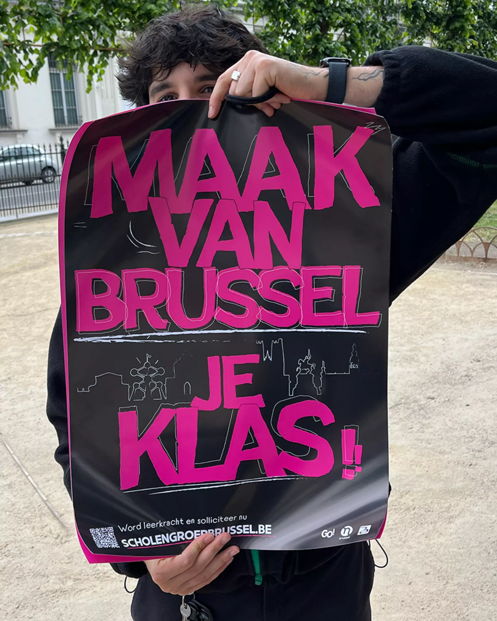 Our video with Brownie and a unique collage-animation was only one part of the campaign, we also made a video-series with real teachers all over the city, showing that a classroom reaches way beyond four walls. To connect all the dots, we designed a style with our slogan MAKE BRUSSELS YOUR CLASSROOM, that was used across all videos, posters and ad visuals. Just watch, you'll see our flyer pop up somewhere in every video and you might still spot a poster in the city somewhere.
