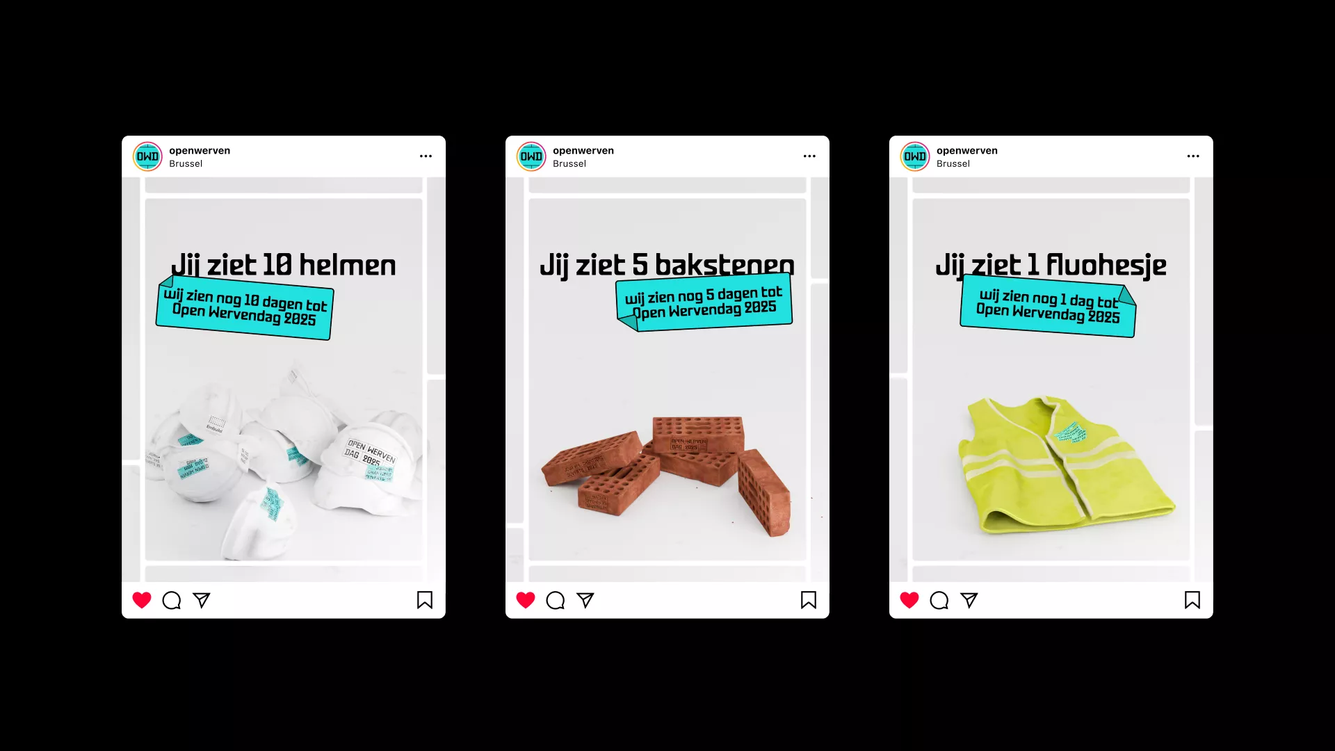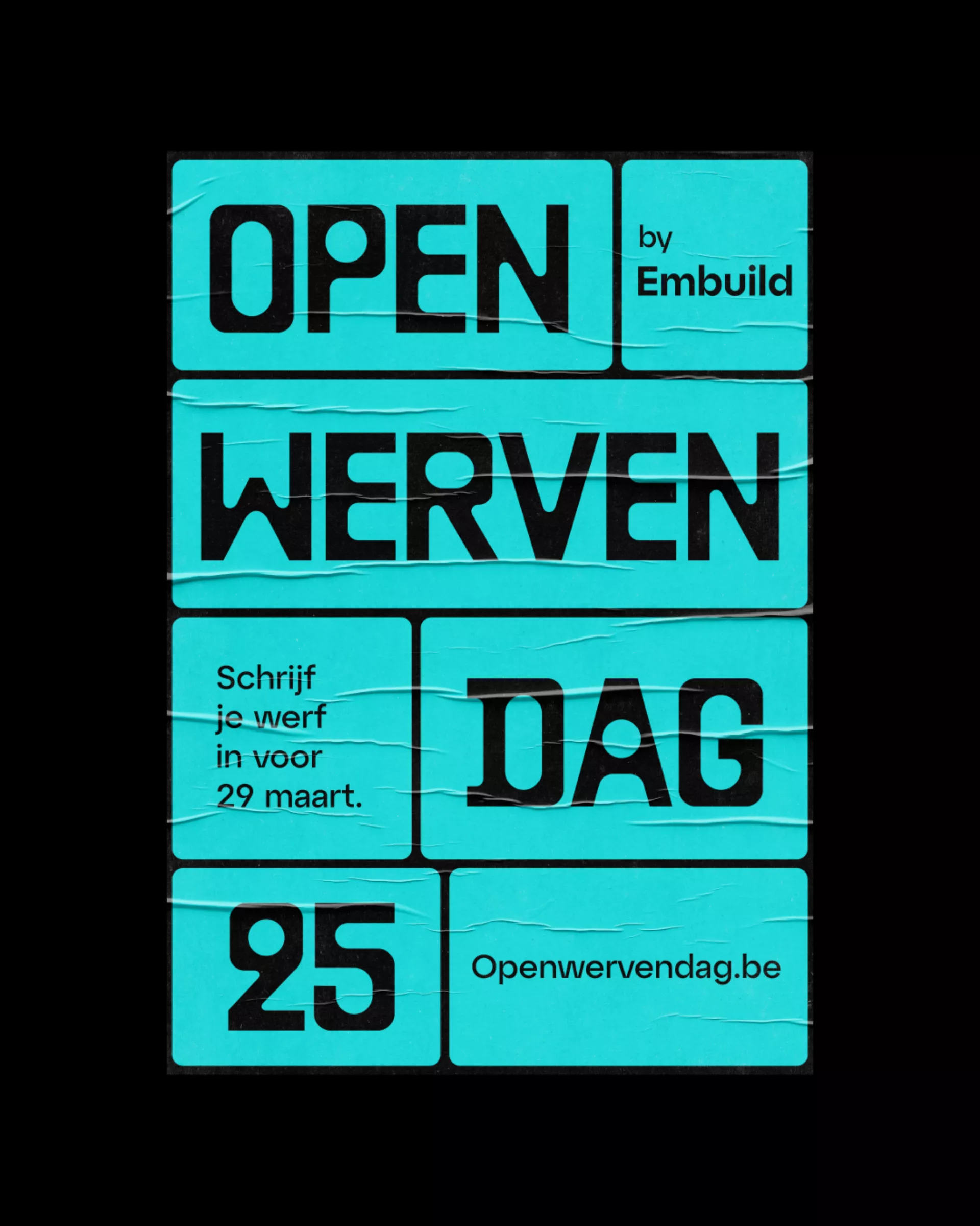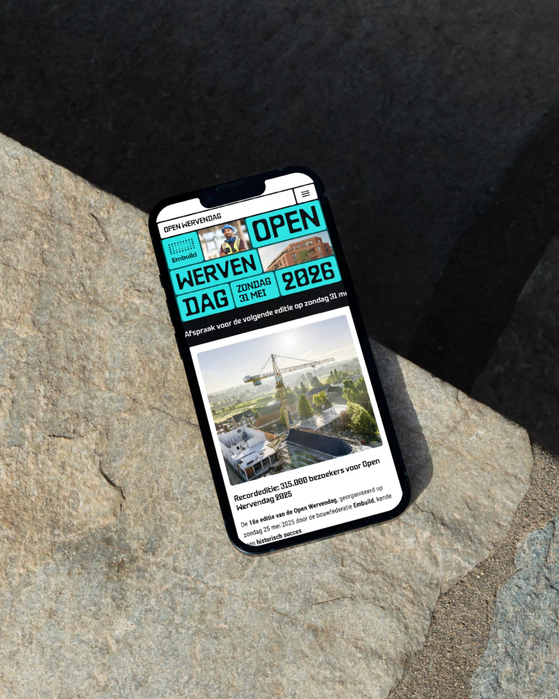 Embuild, the Belgian construction federation, brings the sector closer to the public each year with Open Wervendag. For the fourth year in a row, we were asked to design and execute the national campaign in Dutch, French and German. The goal: invite people to visit real construction sites and show the true value of the industry.